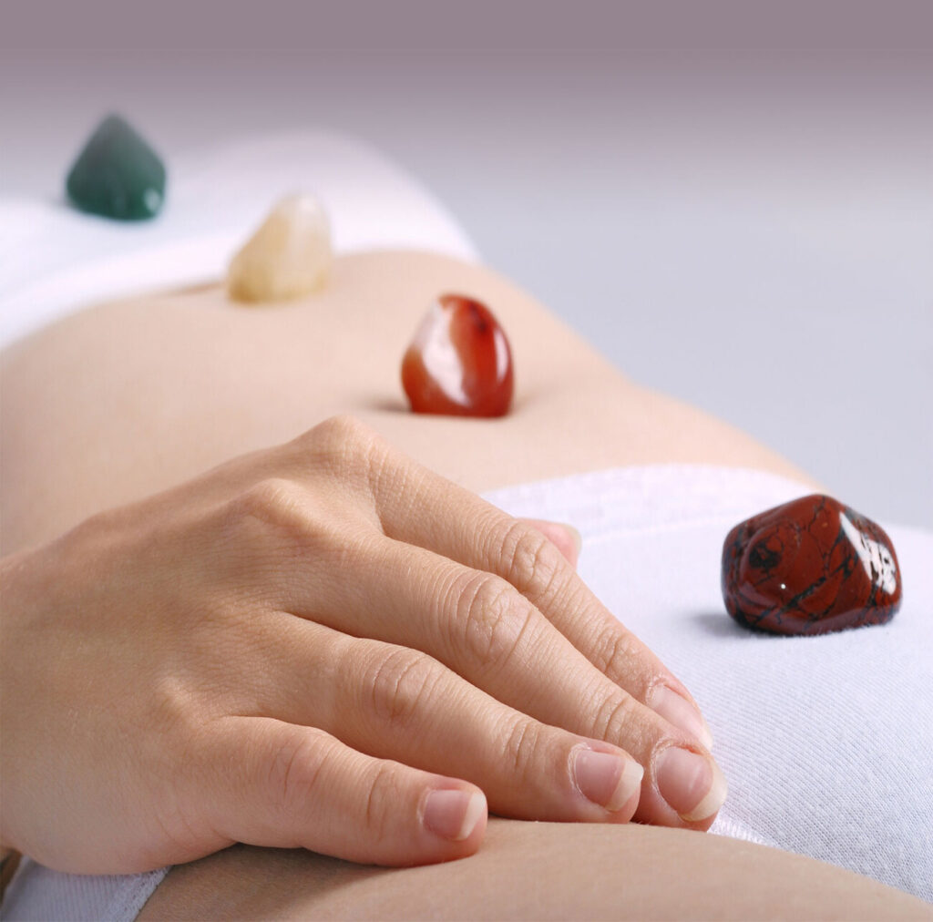 Massage unique alliant manoeuvres relaxantes et utilisation de pierres pour un nettoyage énergétique puissant